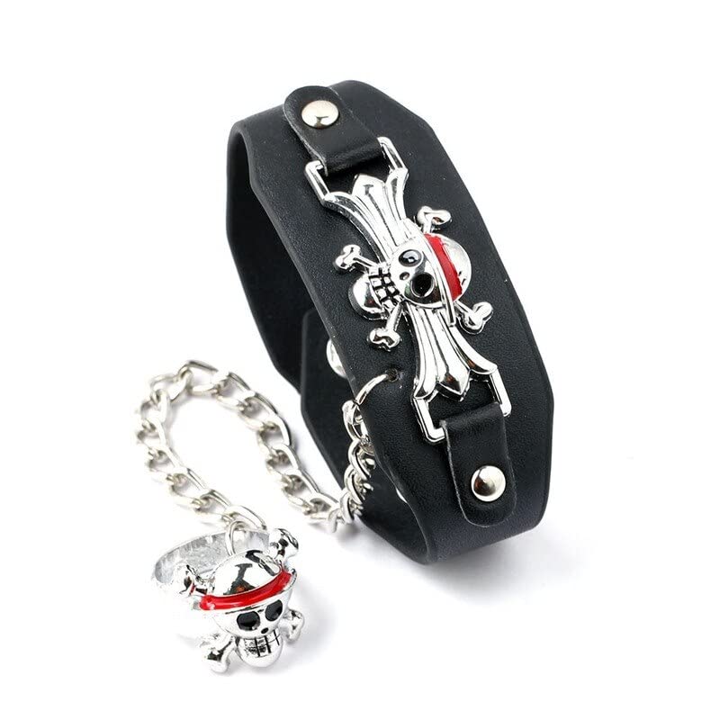 One Piece Luffy Wristband Leather Bracelet & Ring Cosplay Accessory